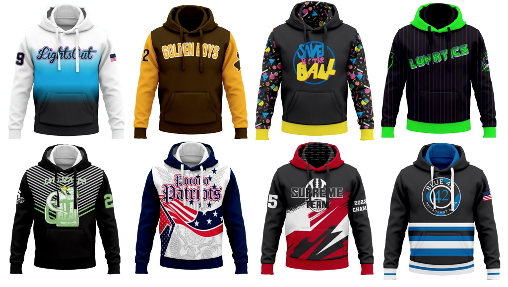 If you need Uniforms for the New Year, give me a call to discuss our fully customized sublimated Jerseys & Sweatshirts at great prices ! We offer a Complete line of Jerseys or Sweatshirts for Softball, Baseball, Football, Soccer, Bowling, Hockey, Basketball & Roller Skating !!! Thank You, Tony Davino - 201-248-5057